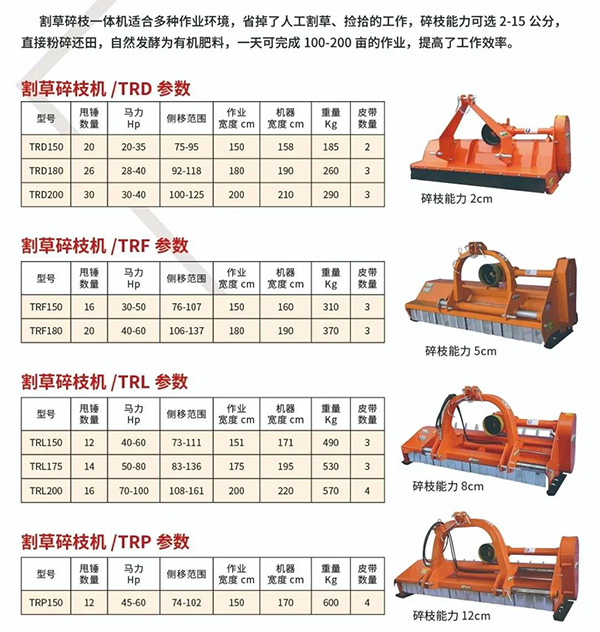 拓普機械提供的割草碎枝一體機不僅能割草,也能碎枝。這樣就減少了機器的閑置時(shí)間;通過(guò)拖拉機帶動(dòng),直接在地里進(jìn)行操作,可以快速的進(jìn)行處理大面積的枝條粉碎工作,粉碎后的枝條直接還田,自然發(fā)酵為有機肥料增加土壤有機質(zhì),起到保墑保水保溫作用;不同的規格碎枝能力不同,粉碎直徑2-15公分規格可選,選擇符合自己需求 的規格,避免了不必要的投入。
