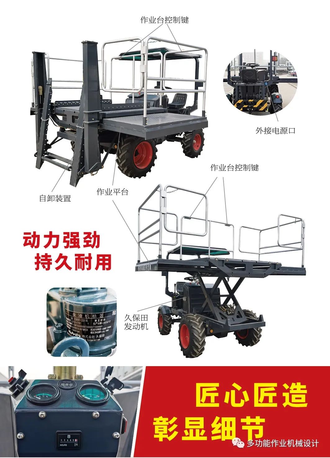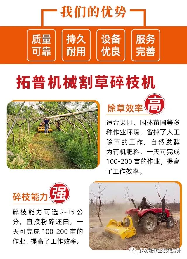 拓普機械參加演示的機器有:多功能果園作業(yè)平臺、果園采摘運輸拖車(chē)、割草碎枝機等。